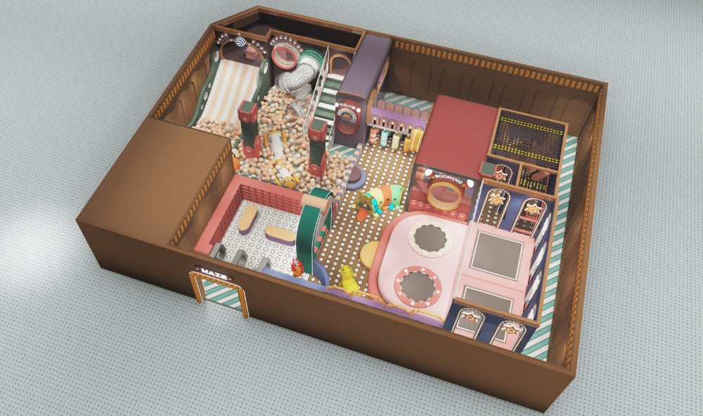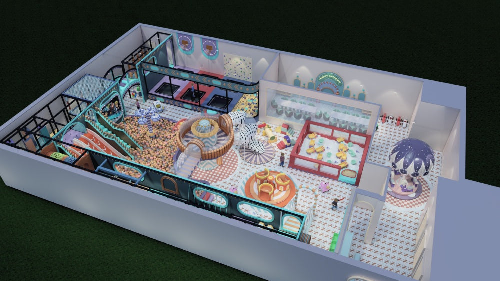 Typically, a ceiling height of 2.8m to 4m (9–13 ft) is sufficient for a 200㎡ playground. However, the exact requirement depends on the design. We can customize the layout based on your actual site conditions.